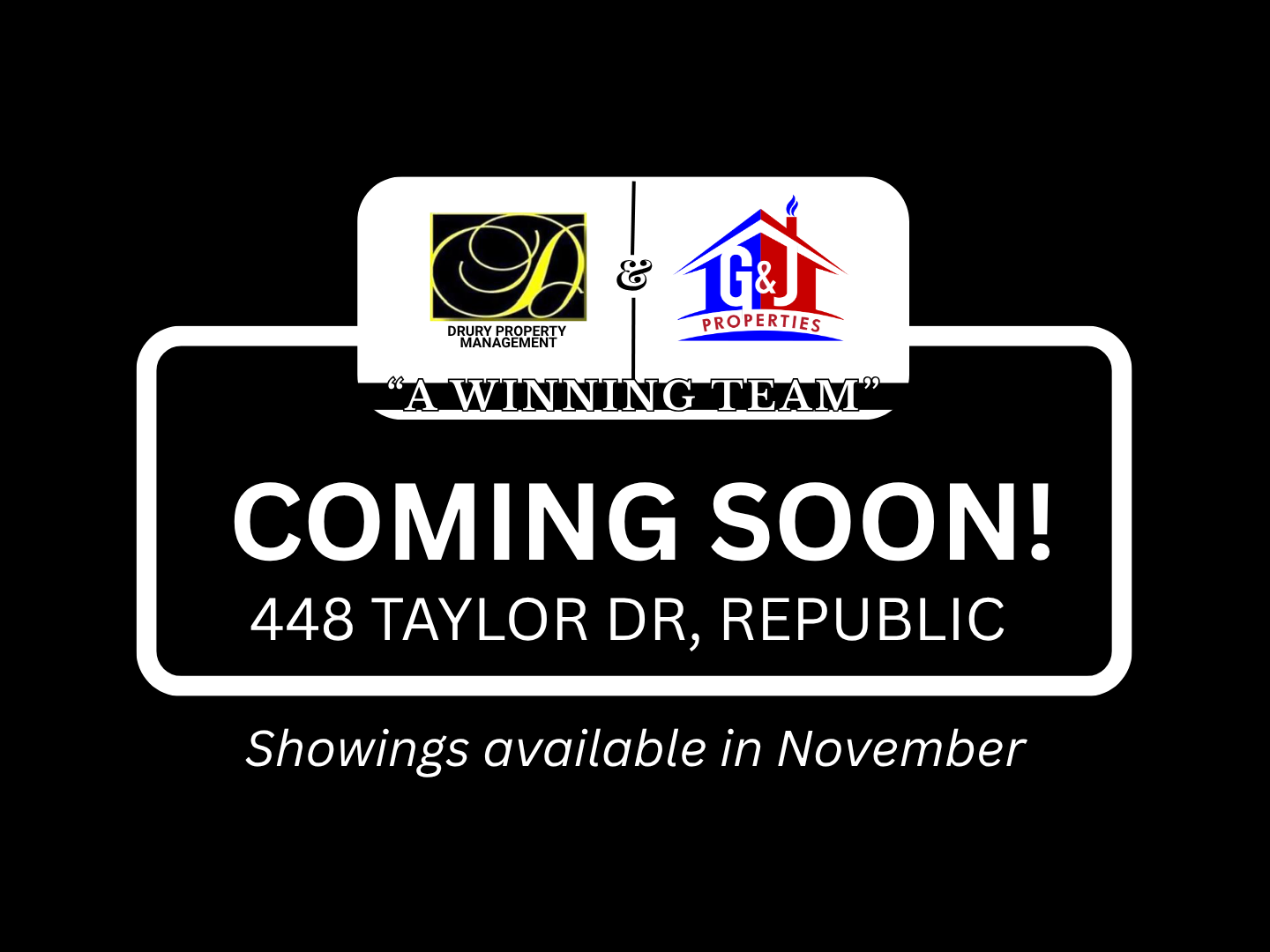 Presented by Drury Property Management and G&J Properties, a winning team!